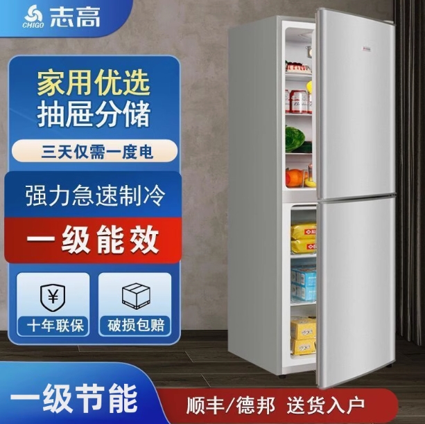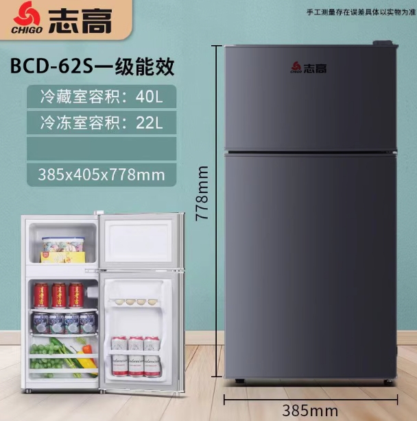 FRIDGE Double door silver BCD-62L first-level energy efficiency (freeze on top and refrigerate on bottom) Zhigao first-level energy-saving double door refrigerator large capacity household dormitory small electricity-saving rental house medium and large refrigerator