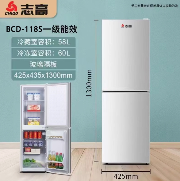 FRIDGE Double door silver and black BCD-118P first-level energy efficiency (freeze on top and refrigerate on bottom) Zhigao first-level energy-saving double door refrigerator large capacity household dormitory small electricity-saving rental house medium and large refrigerator